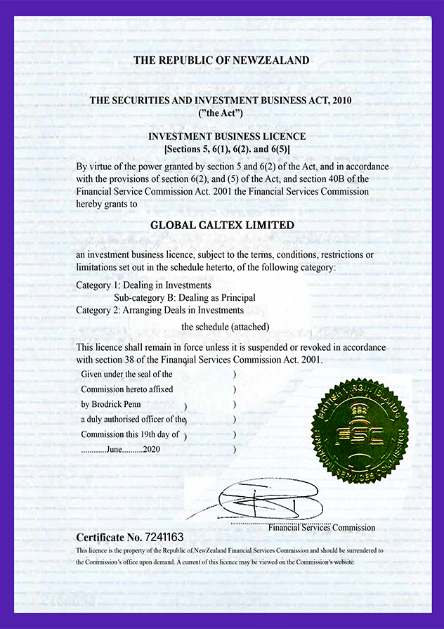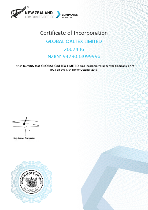 Many years of successful trading activity found its logical confirmation in a legally registered company globalcaltex.com. We have a certificate that is easy to check on the site.